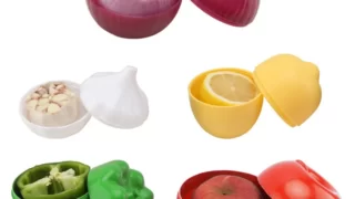 Affordable kitchen crisper set listed for onions, garlic, tomatoes, lemon and green pepper. USD 17.15 with 67% off, 211 orders and 87% rating. Ships to US in 12 days.