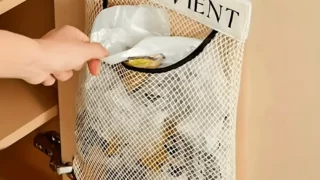 Reusable wall-mounted net bag for kitchen organization from Stone's Store. 50% off at $18.46, ships to US in 12 days. Listing lacks clear dimensions and material details.